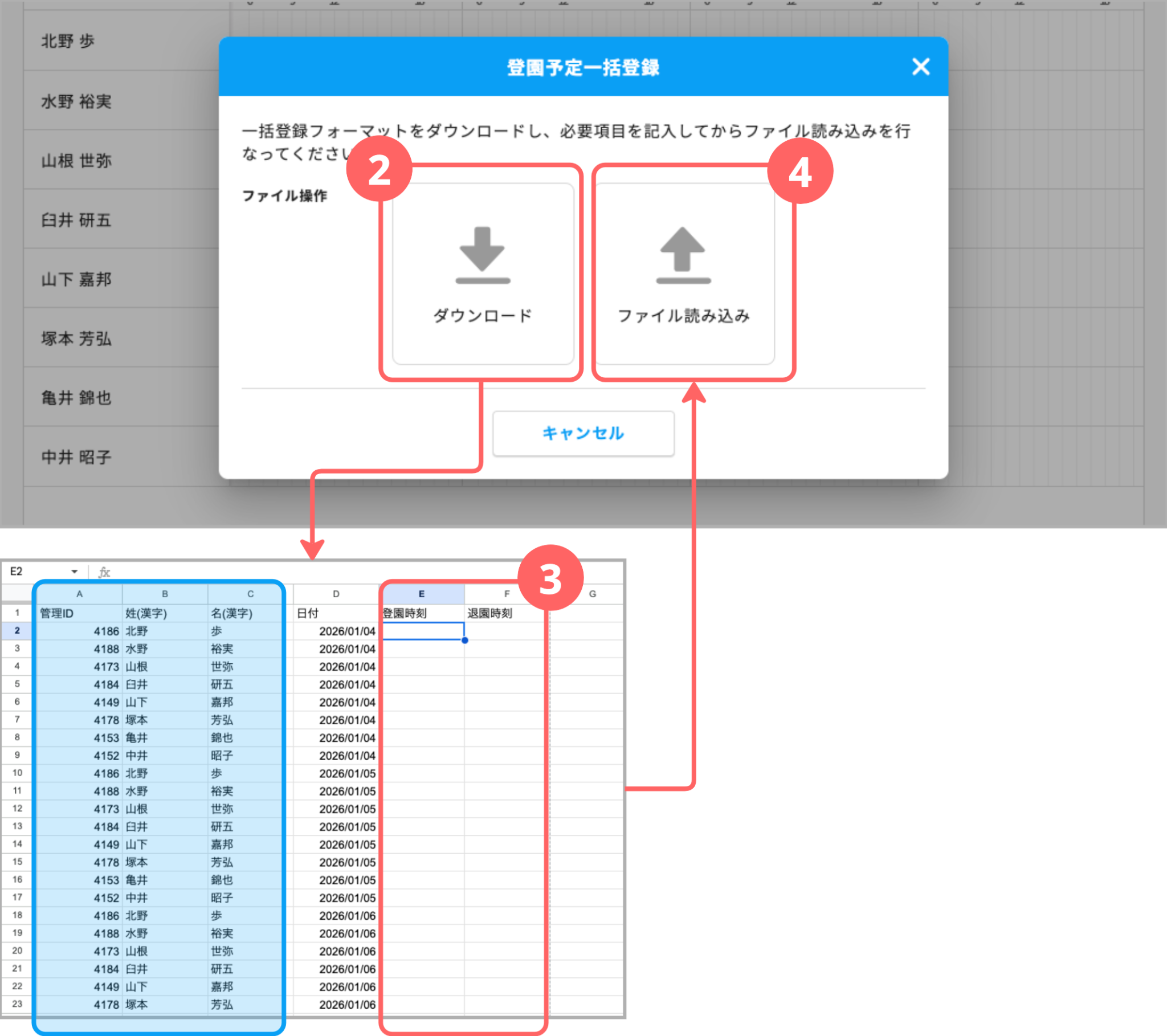 1.登降園予定の一括アップロード