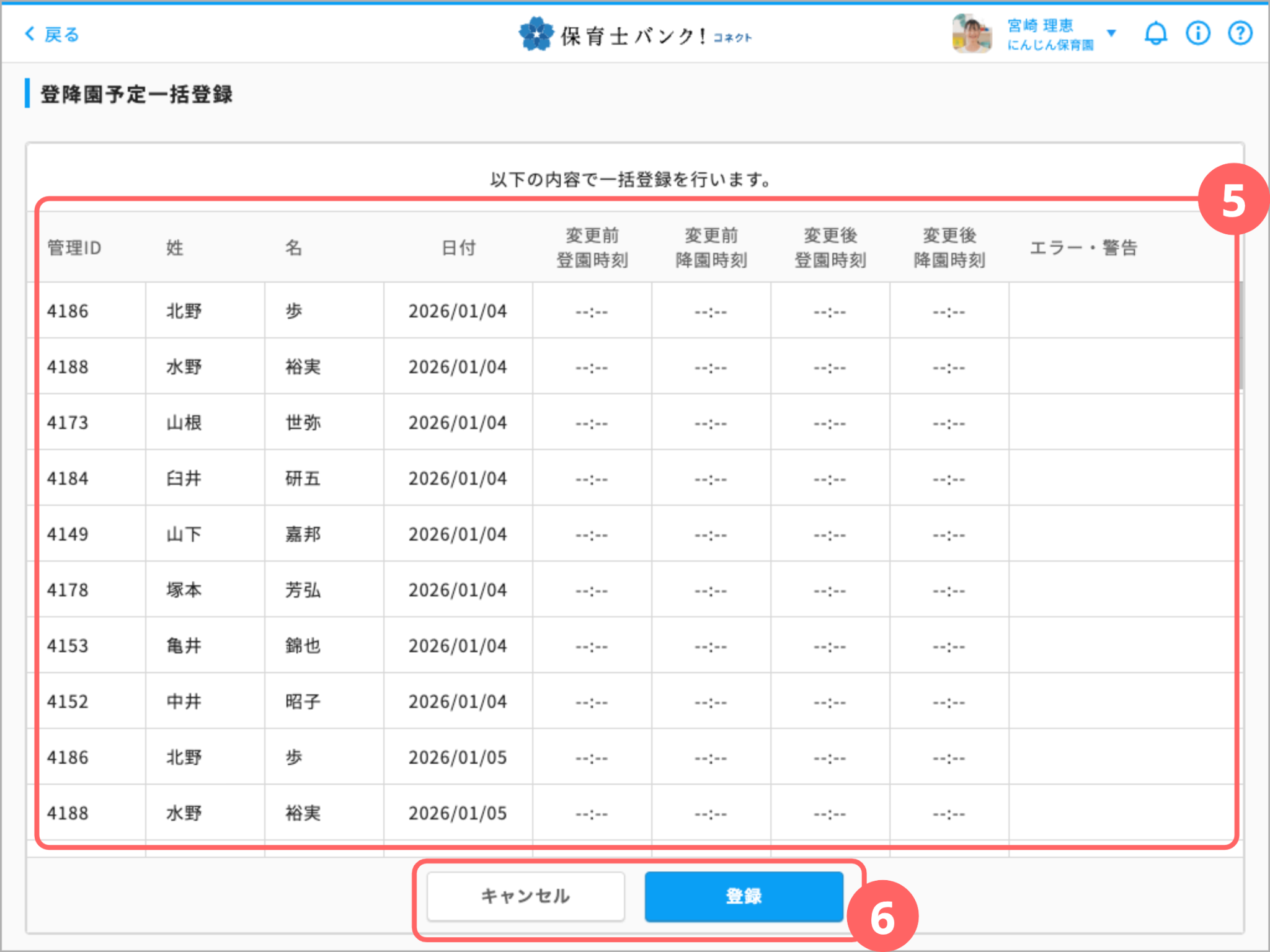 以上で登降園予定の一括登録が完了いたします