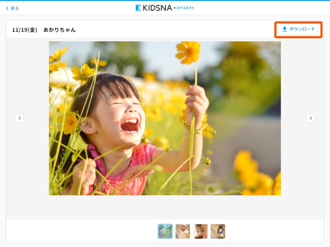③右上の「ダウンロード」ボタンを押し、写真をダウンロードして保存します。